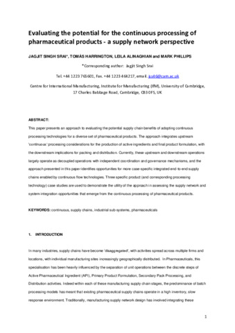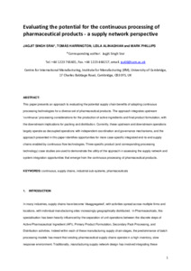 | Title: | Evaluating the potential for the continuous processing of pharmaceutical products—a supply network perspective |