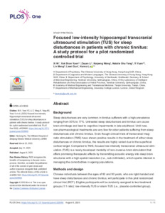 Title: | Focused low-intensity hippocampal transcranial ultrasound stimulation (TUS) for sleep disturbances in patients with chronic tinnitus: A study protocol for a pilot randomized controlled trial |