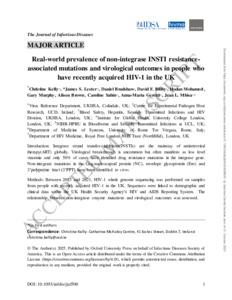 Title: | Real-world prevalence of non-integrase INSTI resistance-associated mutations and virological outcomes in people who have recently acquired HIV-1 in the UK |