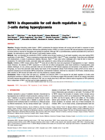| Title: | RIPK1 is dispensable for cell death regulation in β-cells during hyperglycemia |