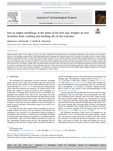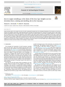 Title: | Iron in copper metallurgy at the dawn of the Iron Age: Insights on iron invention from a mining and smelting site in the Caucasus |