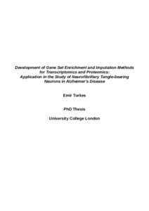 | Title: | Development of Gene Set Enrichment and Imputation Methods for Transcriptomics and Proteomics: Application in the Study of Neurofibrillary Tangle-bearing Neurons in Alzheimer’s Disease |