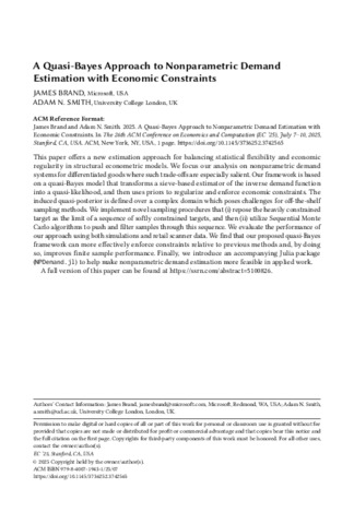 Title: | A Quasi-Bayes Approach to Nonparametric Demand Estimation with Economic Constraints |