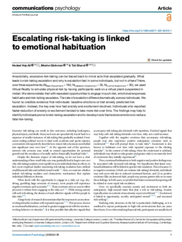 Title: | Escalating risk-taking is linked to emotional habituation |