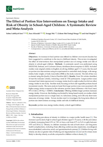 Title: | The Effect of Portion Size Interventions on Energy Intake and Risk of Obesity in School-Aged Children: A Systematic Review and Meta-Analysis |