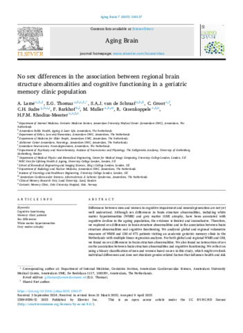No sex differences in the association between regional brain structure abnormalities and cognitive functioning in a geriatric memory clinic population.