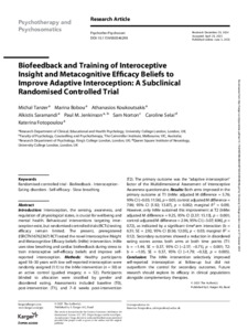 Biofeedback and Training of Interoceptive Insight and Metacognitive Efficacy Beliefs to Improve Adaptive Interoception: A Subclinical Randomised Controlled Trial.