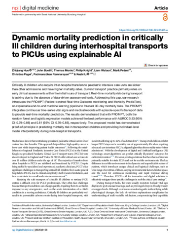 Title: | Dynamic mortality prediction in critically Ill children during interhospital transports to PICUs using explainable AI |