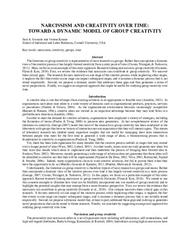 | Title: | Narcissism and creativity over time: Toward a dynamic model of group creativity |