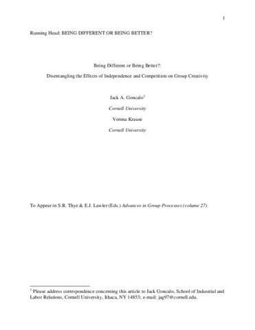 | Title: | Being different or being better?: Disentangling the effects of independence and competition on group creativity |