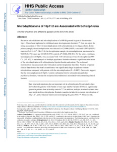 Microduplications of 16p11.2 are associated with schizophrenia.