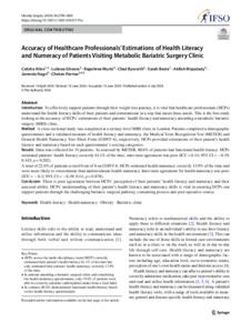 Title: | Accuracy of Healthcare Professionals' Estimations of Health Literacy and Numeracy of Patients Visiting Metabolic Bariatric Surgery Clinic |