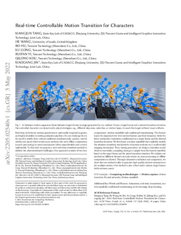 Keywords: | Animation; conditional transitioning; deep learning; in-betweening; locomotion; motion manifold; real-time |