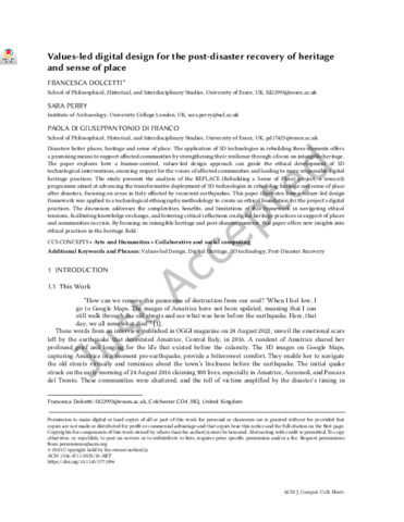 Title: | Values-led digital design for the post-disaster recovery of heritage and sense of place |