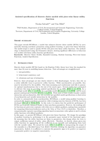 Keywords: | Discrete Choice Models, Ensemble Learning, Machine Learning, Piece-wise Linear Functions, Assisted Specification |