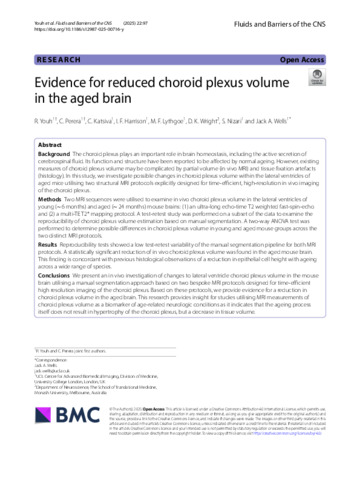 | Title: | Evidence for reduced choroid plexus volume in the aged brain |