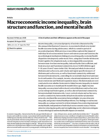 | Title: | Macroeconomic income inequality, brain structure and function, and mental health |