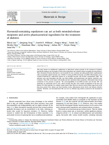 Title: | Flavonoid-containing copolymers can act as both extended-release excipients and active pharmaceutical ingredients for the treatment of diabetes |