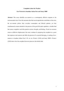 | Title: | Complaints about the Weather: Eco-Neurosis in Jonathan Safran Foer and Jenny Offill |
