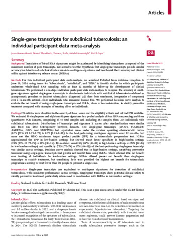 Single-gene transcripts for subclinical tuberculosis: an individual participant data meta-analysis.