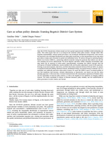 | Title: | Care as urban policy domain: framing Bogota's District Care System |