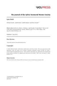 Lynn Mutti is remembered by four friends and colleagues in the Sylvia Townsend Warner Society. The article touches on her work as Secretary of the Society and on her PhD thesis on Warner and music.