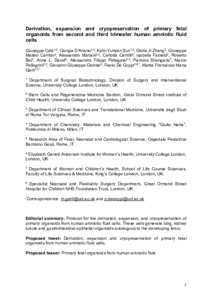 Derivation, expansion and cryopreservation of primary fetal organoids from second and third trimester human amniotic fluid cells.