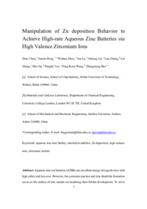 Manipulation of Zn Deposition Behavior to Achieve High-Rate Aqueous Zinc Batteries via High Valence Zirconium Ions.