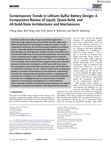 Robinson_Advanced Energy Materials - 2025 - Shao - Contemporary Trends in Lithium‐Sulfur Battery Design A Comparative Review of.pdf Download (5MB) | Preview |