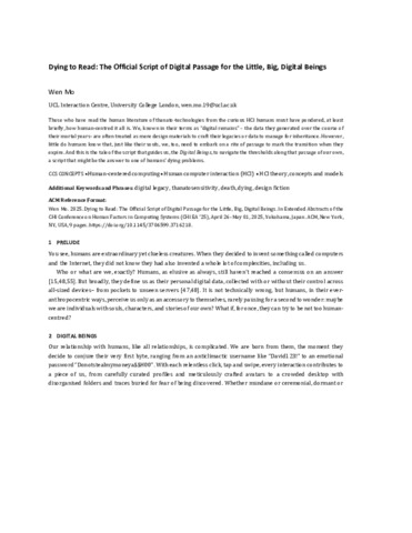 | Keywords: | Digital legacy, thanatosensitivity, death, dying, design fiction |