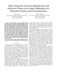 Keywords: | Affine frequency division multiplexing, AFDM, Integrated sensing and communications, ISAC, index modulation |