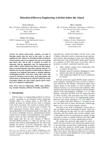 Title: | Detection of Reverse Engineering Activities before the Attack |