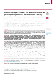 Modelling the impact of climate and the environment on the spatiotemporal dynamics of Lyme borreliosis in Germany.