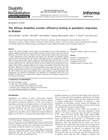 | Title: | The African disability scooter: efficiency testing in paediatric amputees in Malawi |