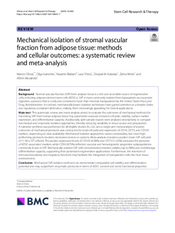 Title: | Mechanical isolation of stromal vascular fraction from adipose tissue: methods and cellular outcomes: a systematic review and meta-analysis |