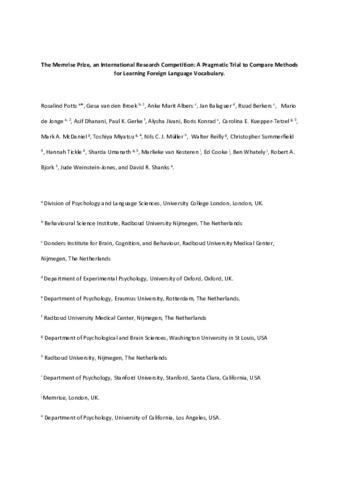| Title: | The Memrise Prize, an International Research Competition: A Pragmatic Trial to Compare Methods for Learning Foreign Language Vocabulary |