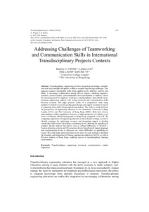 Title: | Addressing Challenges of Teamworking and Communication Skills in International Transdisciplinary Projects Contexts |