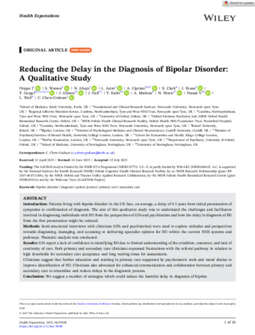| Title: | Reducing the Delay in the Diagnosis of Bipolar Disorder: A Qualitative Study |