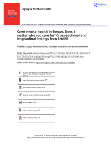 | Title: | Carer mental health in Europe. Does it matter who you care for? Cross-sectional and longitudinal findings from SHARE |