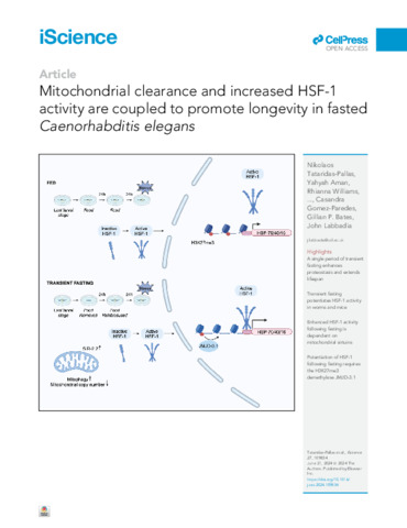 Mitochondrial clearance and increased HSF-1 activity are coupled to promote longevity in fasted Caenorhabditis elegans.