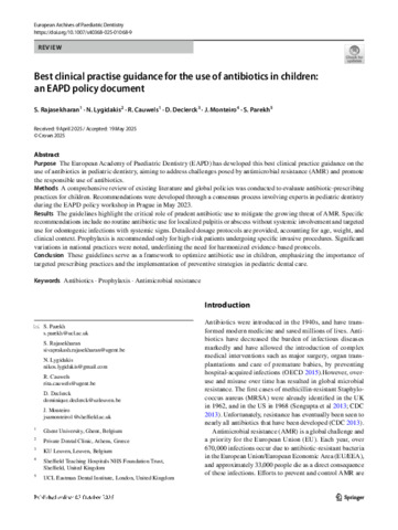 Title: | Best clinical practise guidance for the use of antibiotics in children: an EAPD policy document |