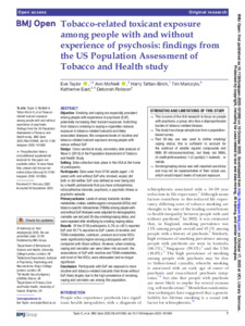 | Title: | Tobacco-related toxicant exposure among people with and without experience of psychosis: findings from the US Population Assessment of Tobacco and Health study |