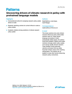 | Title: | Uncovering drivers of climate research in policy with pretrained language models |