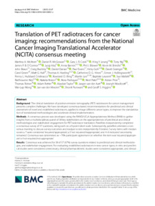 Translation of PET radiotracers for cancer imaging recommendations from the National Cancer Imaging Translational Accelerato.pdf - Published Version Download (1MB) | Preview |