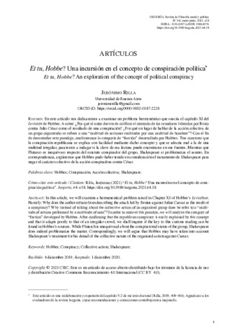 | Title: | Et tu, Hobbe? Una incursión en el concepto de conspiración política |