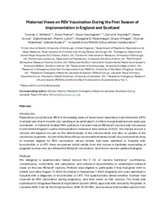 | Title: | Maternal views on RSV vaccination during the first season of implementation in England and Scotland |