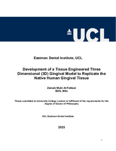 | Title: | Development of a Tissue Engineered Three Dimensional (3D) Gingival Model to Replicate the Native Human Gingival Tissue |