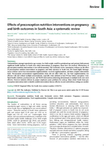 Effects of preconception nutrition interventions on pregnancy and birth outcomes in South Asia a systematic review.pdf - Published Version Download (1MB) | Preview |