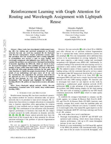 | Title: | Reinforcement Learning with Graph Attention for Routing and Wavelength Assignment with Lightpath Reuse |