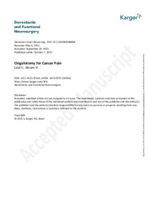 Stereotactic anterior cingulotomy is a neurosurgical technique that can offer significant pain relief in patients with refractory cancer pain, particularly in the palliative setting. Despite being described in the 1960s, its use has recently resurged due to limitations of pharmacologic and neuromodulatory therapies in terminally ill patients. The anterior cingulate cortex plays a crucial role in the affective processing of pain, and its disruption through targeted lesioning may reduce suffering without eliminating nociception. This review summarises the historical background, patient selection criteria, surgical approaches, efficacy data, and safety outcomes associated with bilateral anterior cingulotomy for cancer-related pain. Additionally, the Queen Square approach, incorporating MRI-guided targeting and diffusion imaging, is described. Available data support the procedure’s short-term efficacy in the majority of patients, with limited cognitive side effects and minimal morbidity. Future directions include network-based targeting, refinement of lesion techniques, and consideration of non-invasive alternatives such as focused ultrasound. Further research is warranted to optimise selection criteria and understand the neural mechanisms underlying pain relief.